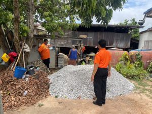 มอบวัสดุอุปกรณ์ก่อสร้าง ให้แก่ นางเปลื้อง รักกิ่ง บ้านนกออก หมู่ที่ 10
