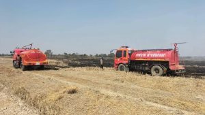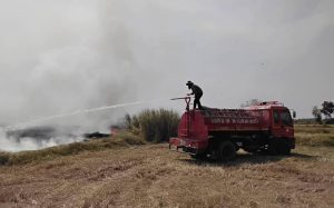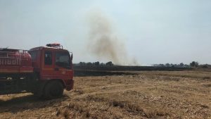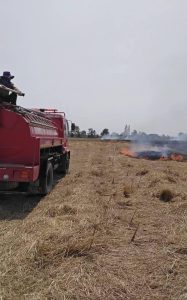 รถบรรทุกน้ำ เพื่อเข้าระงับเหตุไฟไหม้ (ตอซังข้าว)