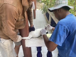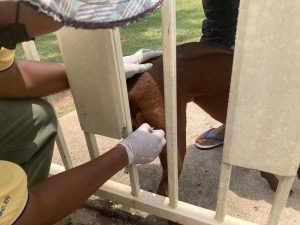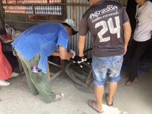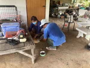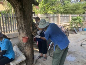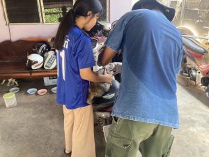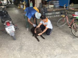 ร่วมกับ อสม.หมู่ 4 ลงพื้นที่ฉีดวัคซีนป้องกันโรคพิษสุนัขบ้าให้กับสุนัขและแมว ที่บ้านสระน้อย หมู่ที่ 4